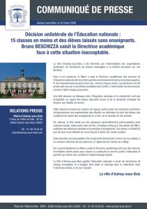 Le Maire d’Aulnay-sous-Bois s’insurge contre la fermeture de 15 classes dans sa ville