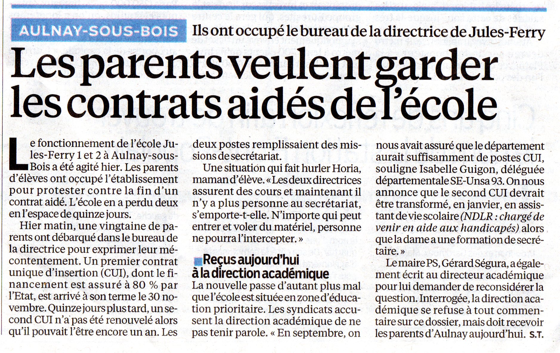 Le Parisien du 18 décembre revient sur cet événement. Vous pouvez lire l’article de ce journal en cliquant sur l’image ci-contre.