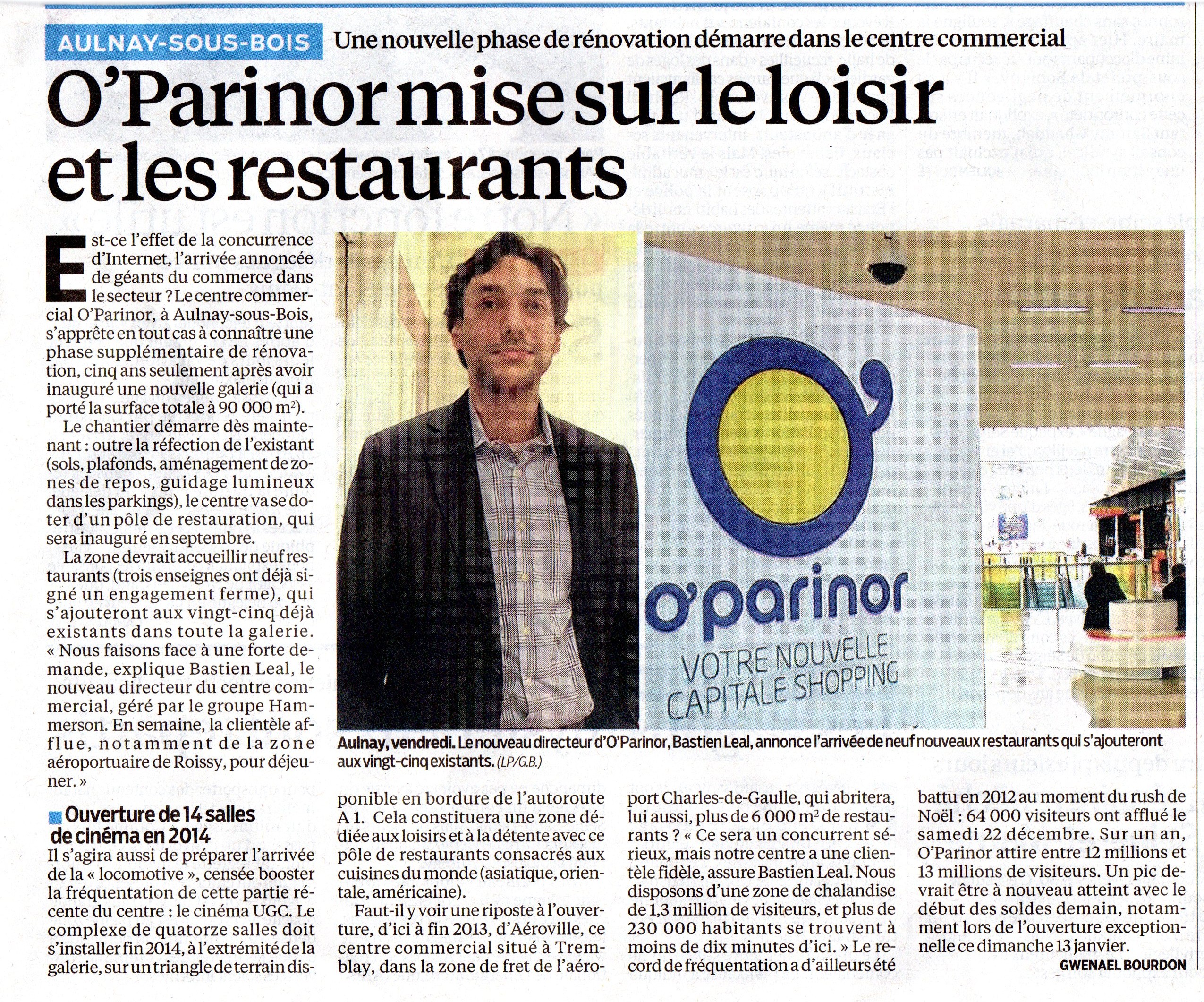 ‘Est-ce l’effet de la concurrence d’Internet, l’arrivée annoncée de géants du commerce dans le secteur? Le centre commercial O’Parinor, à Aulnay-sous-Bois, s’apprête en tout cas à connaître une phase supplémentaire de rénovation, cinq ans seulement après avoir inauguré une nouvelle galerie (qui a porté la surface totale à 90 000 m²).