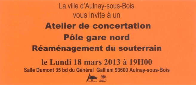 Atelier de concertation du Pôle Gare Nord d’Aulnay-sous-Bois sur le souterrain le 18 mars