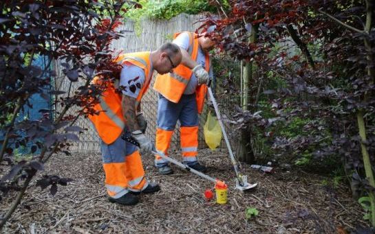 Munis de pinces, les agents des services techniques arpentent la ville pour la nettoyer de ces déchets dangereux laissés par les toxicomanes.