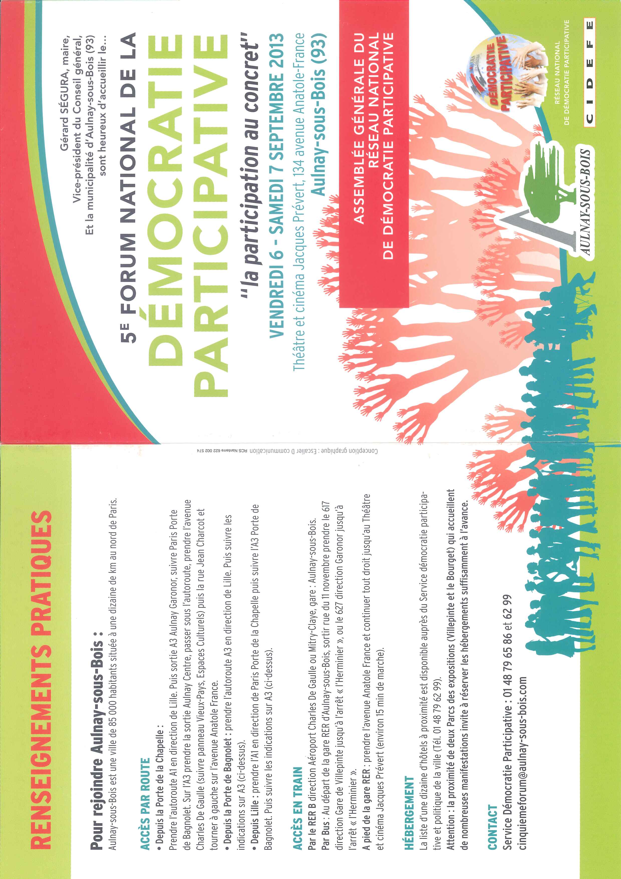 Publié le 5 septembre 2013, dans Démocratie Locale, Politique, et tagué Aulnay, Aulnay-sous-Bois, Forum national démocratie participative. Bookmarquez ce permalien. Poster un commentaire.