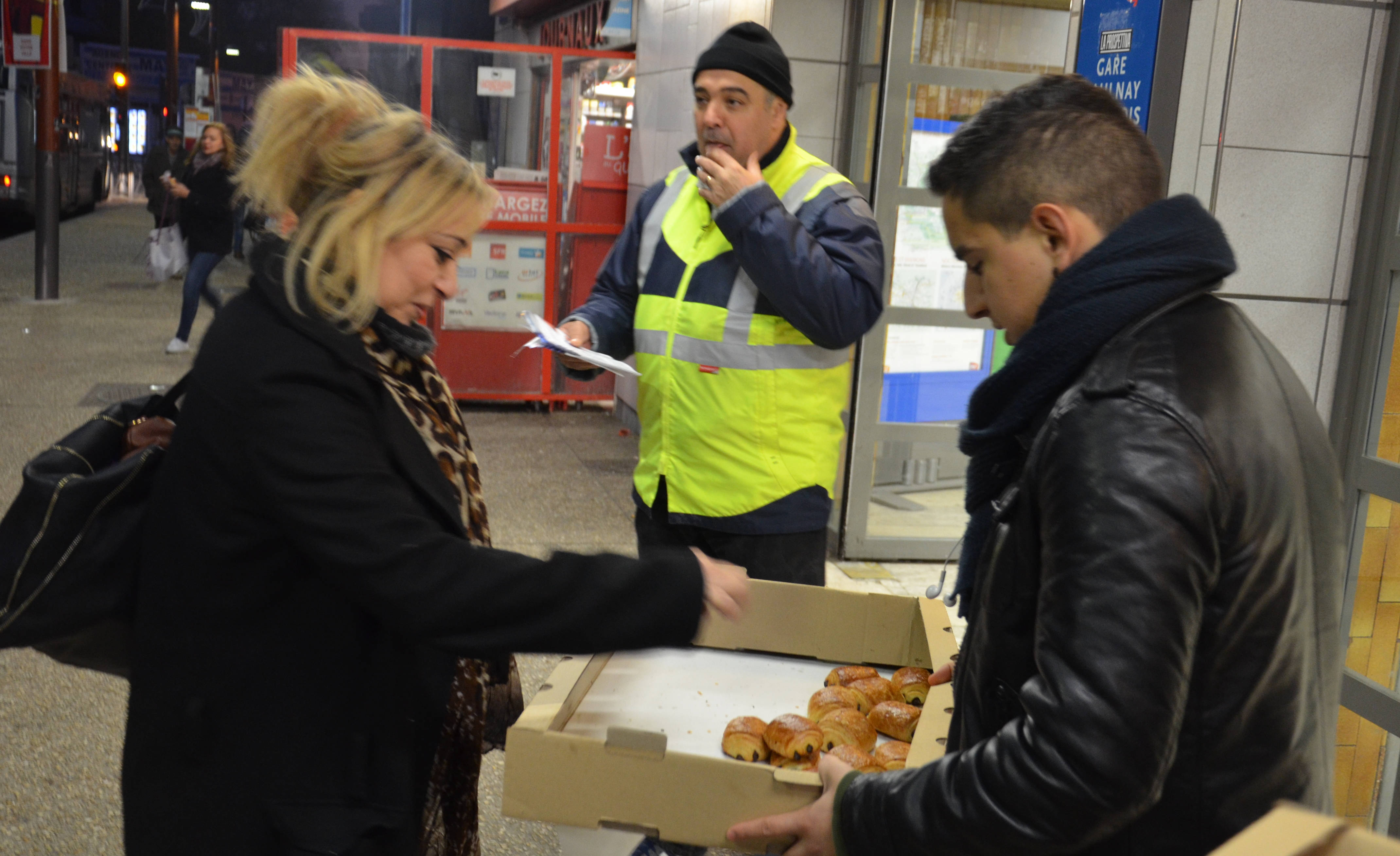 Copé à Aulnay-sous-Bois : Les Jeunes socialistes distribuent des pains au chocolat