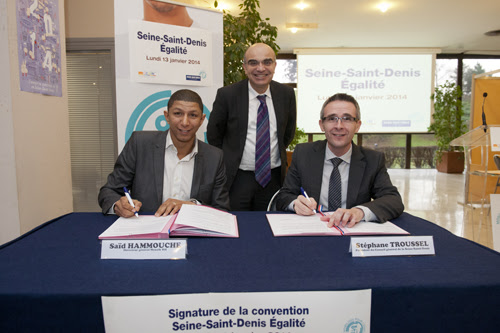 Lundi 13 janvier 2014, Stéphane Troussel, Président du Conseil général, et Saïd Hammouche, fondateur et directeur général de Mozaïk RH, ont signé à l’Hôtel du Département à Bobigny une convention de partenariat en présence du monde économique, d’acteurs associatifs et de jeunes diplômés de Seine-Saint-Denis.