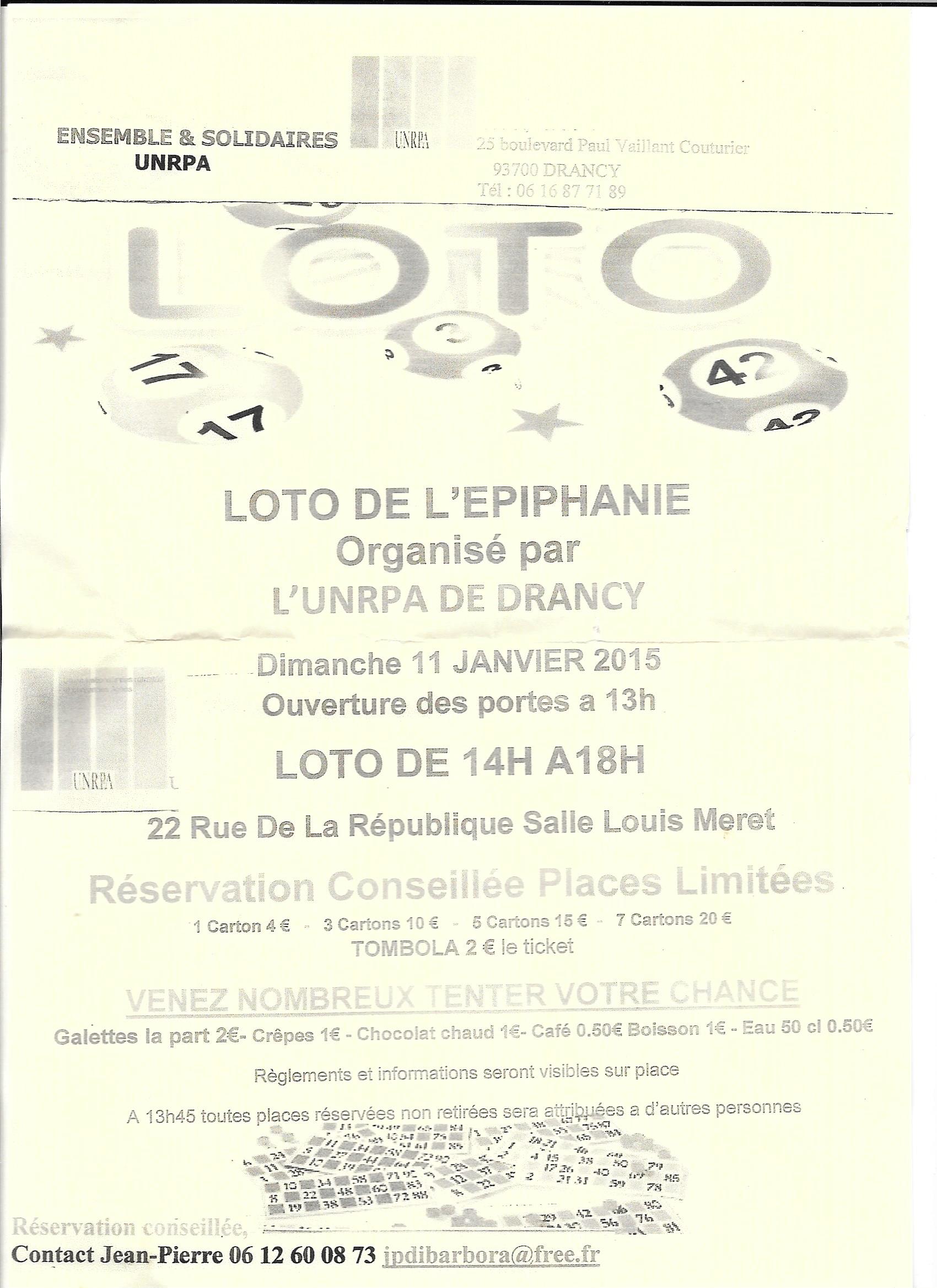 L’UNRPA de DRANCY organise le LOTO DE L’EPIPHANIE