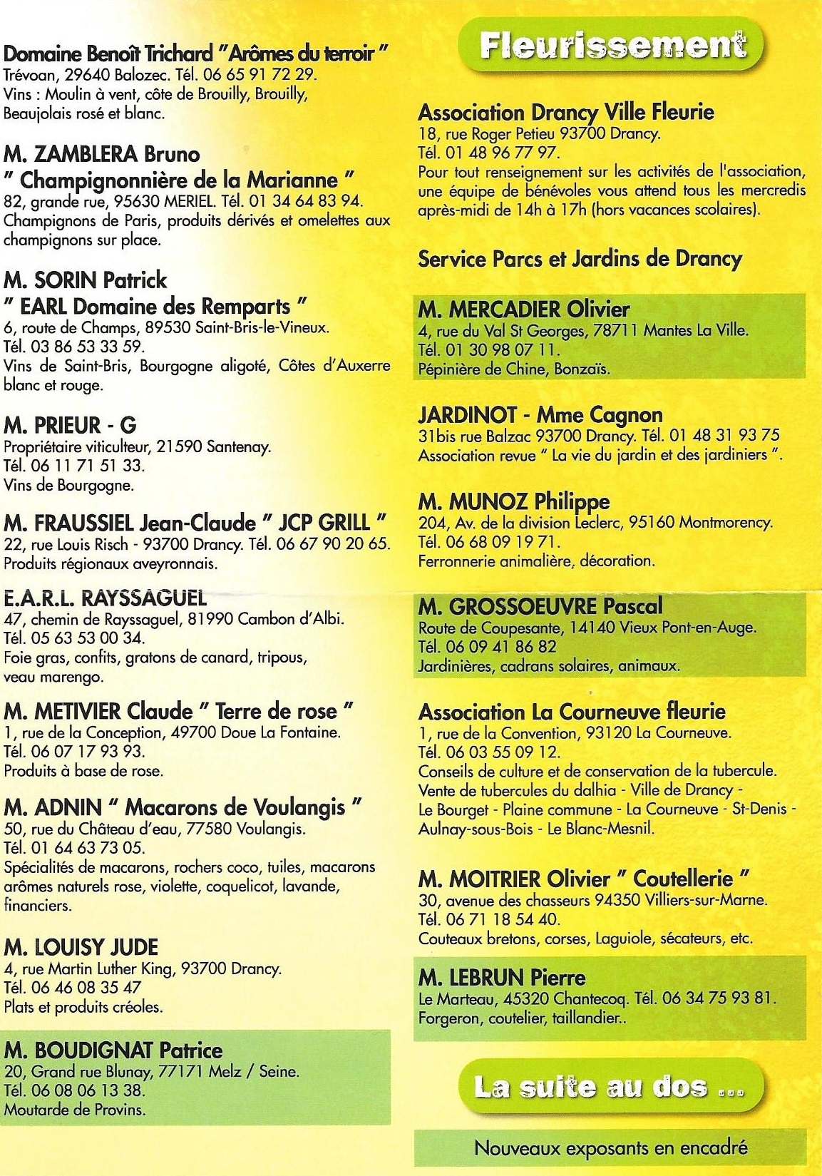 Ci-dessous la liste des exposants :