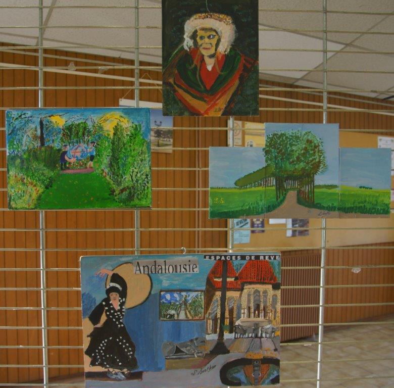 Quant à notre exposition d’Arts Plastiques… Lucienne SOATHAN… notre doyenne… qui soufflera ses 98 bougies cette année… a exposé ses tableaux au côté de ceux d’autres membres de l’association… Jocelyne BISSERIER… Manuel CAUCHETIEZ… Elise DAVY… Martine MOREAU… Karine TIMSIT… Gérard VERSET…