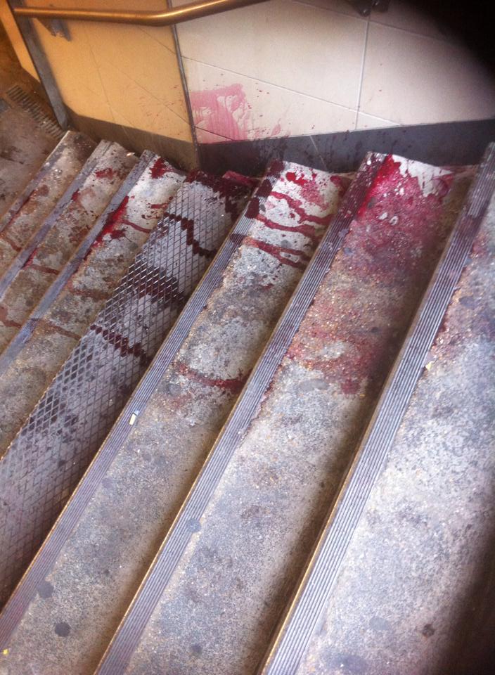Un lecteur nous informe qu’un règlement de compte sanglant a eu lieu probablement dans la nuit du 5 au 6 juin, sur le quai 6 de la gare d’Aulnay-sous-Bois. Comment l’en atteste la photo ci-contre, du sang a giclé sur les escaliers menant à ce quai.