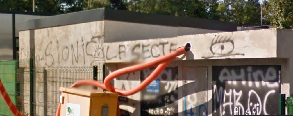 sionistes_aulnayUne photo assez surprenante circule sur Google Map où l’on peut voir, quelque part à Aulnay-sous-Bois, cette étrange inscription : « Sioniste la secte », avec ce qui ressemble à un œil à côté.