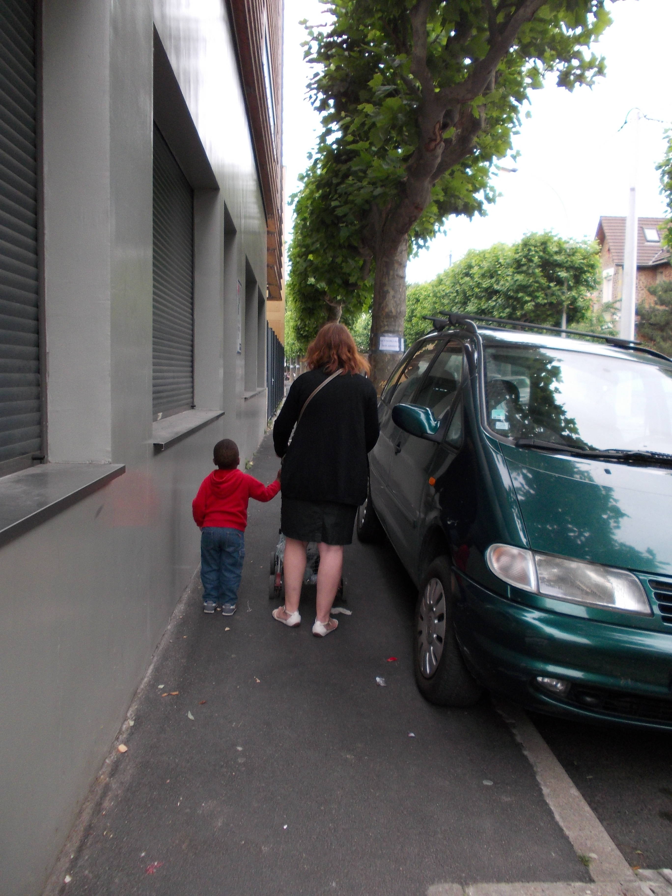 Autre sujet de préoccupation : le peu d’espace sur le trottoir laissé aux passant, comme l’en atteste la deuxième photo. Un extrait d’un magasine dédié à la voirie indique :