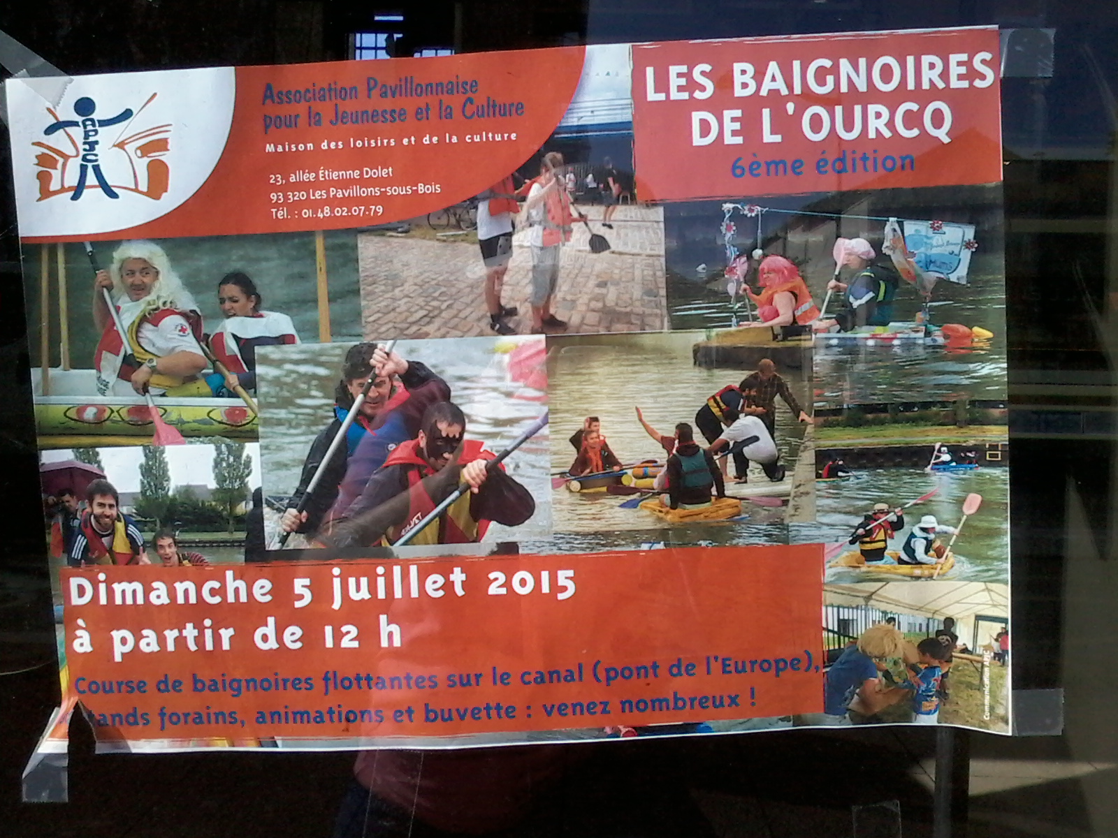 * Baignoires de l’Ourcq : courses de baignoires flottantes sur le canal de l’Ourcq, (pont de l’Europe) stands forains, animations et buvette, venez nombreux!!!!