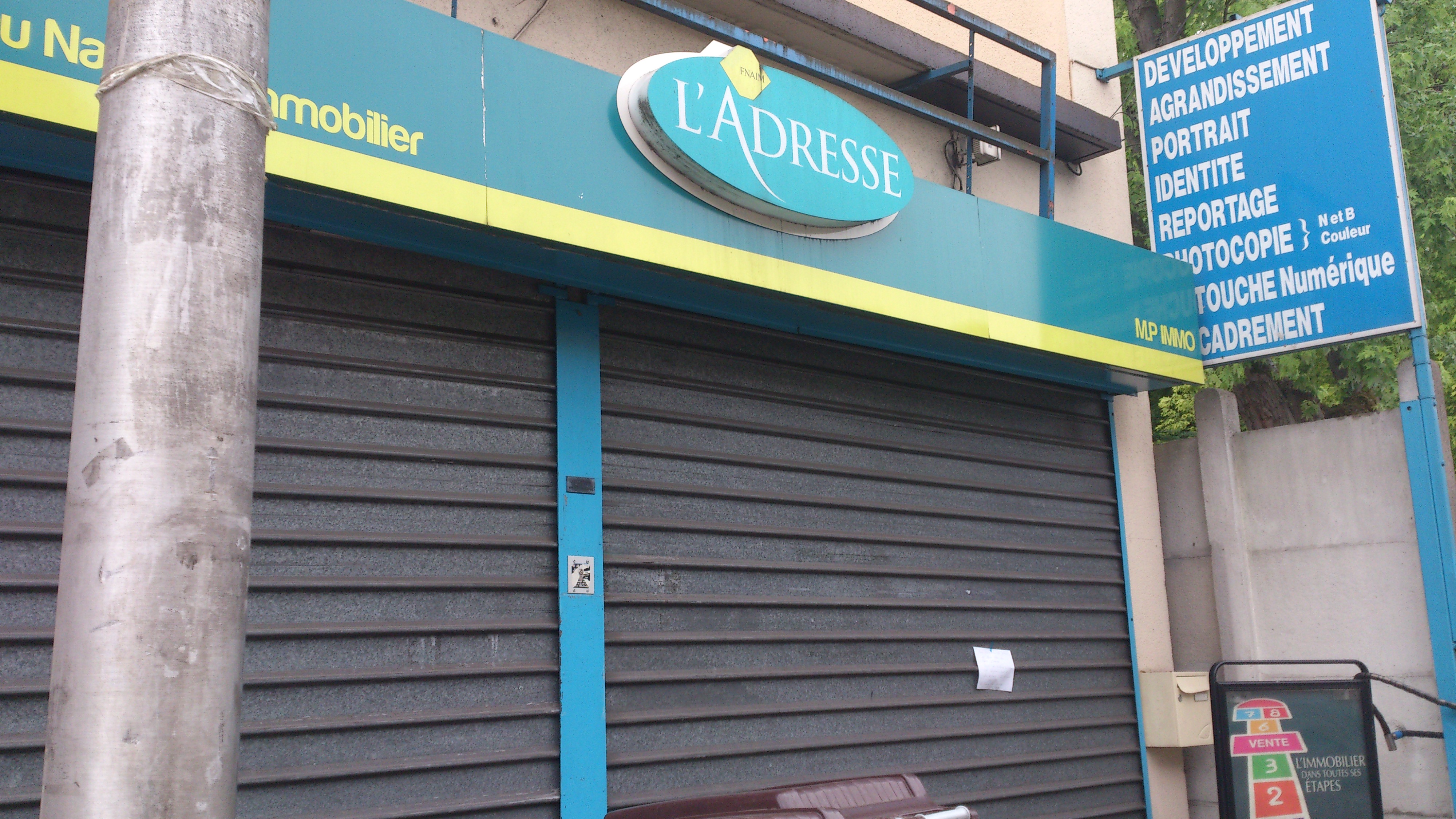 Une affiche explicite sur une agence immobilière à Aulnay-sous-Bois