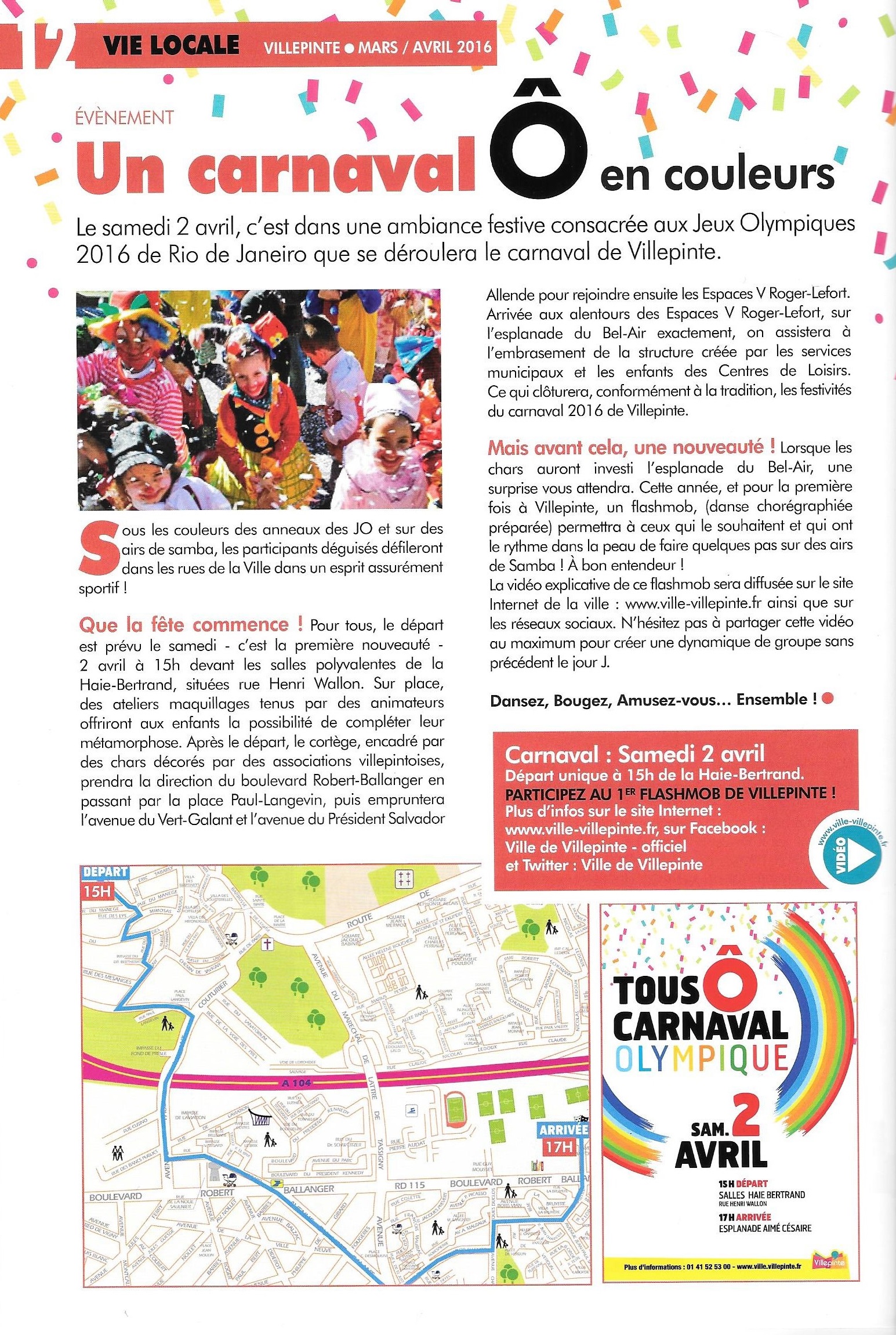 La ville de Villepinte organise un carnaval « Olympique » le samedi 2 avril 2016.