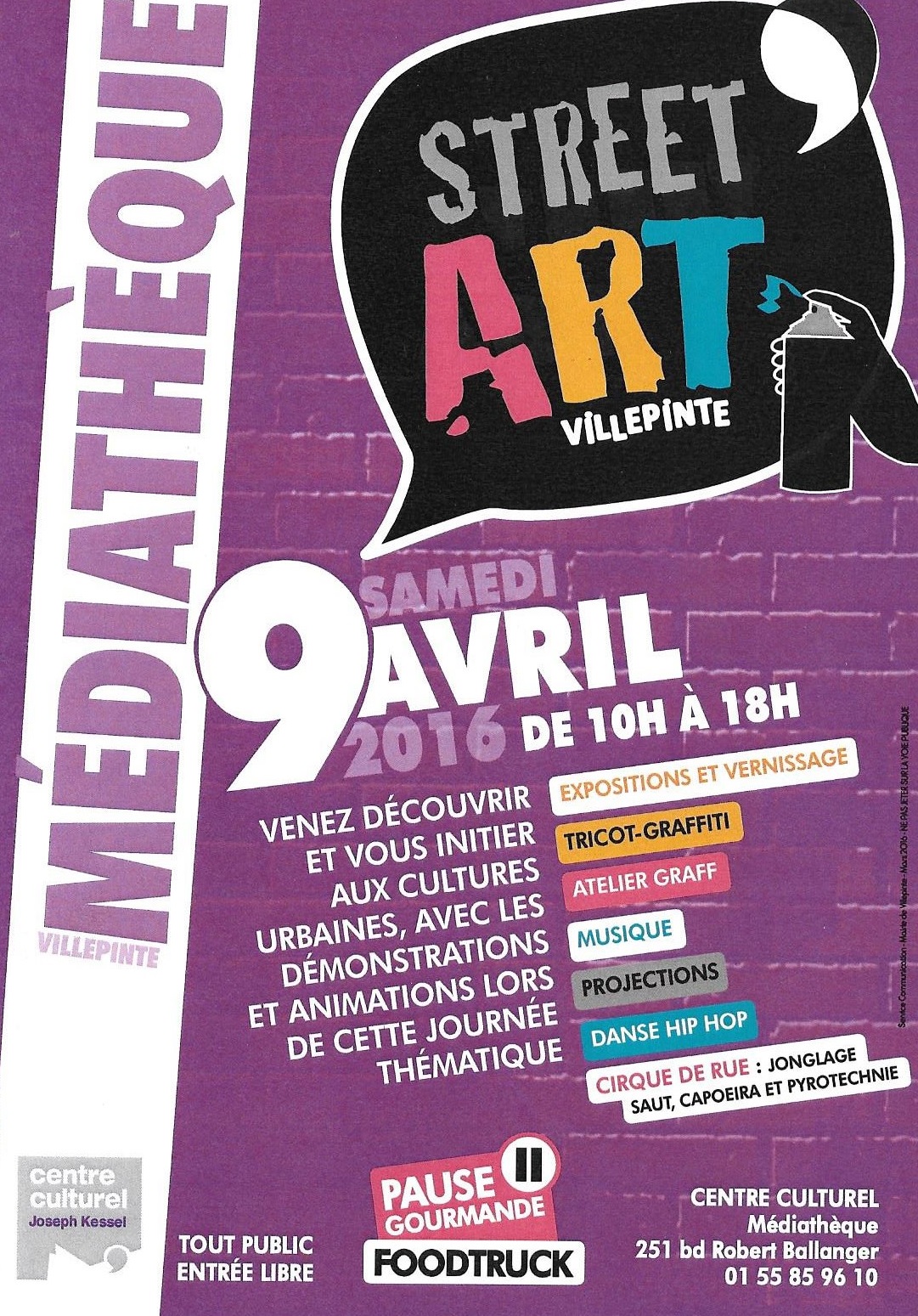 Venez découvrir et vous initier aux cultures urbaines, avec les démonstrations et animations lors de cette journée thématique le samedi 9 avril 2016 de 10 heures à 18 heures à la médiathèque de Villepinte, 251 boulevard Robert Ballanger, Villepinte.