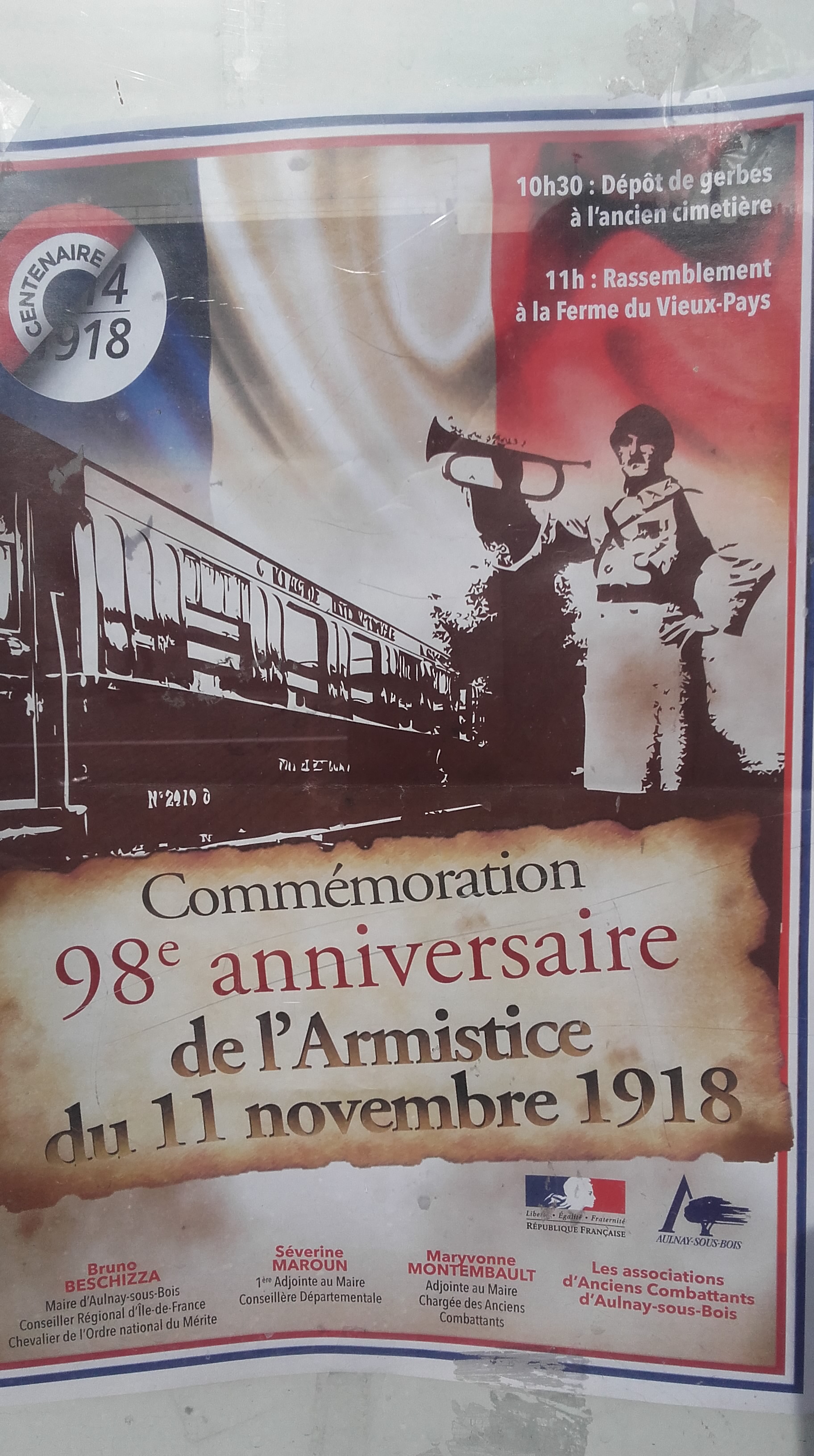 La ville d’Aulnay-Sous-Bois organise la commémoration du 98 eme anniversaire de l’armistice du 11 novembre 1918.