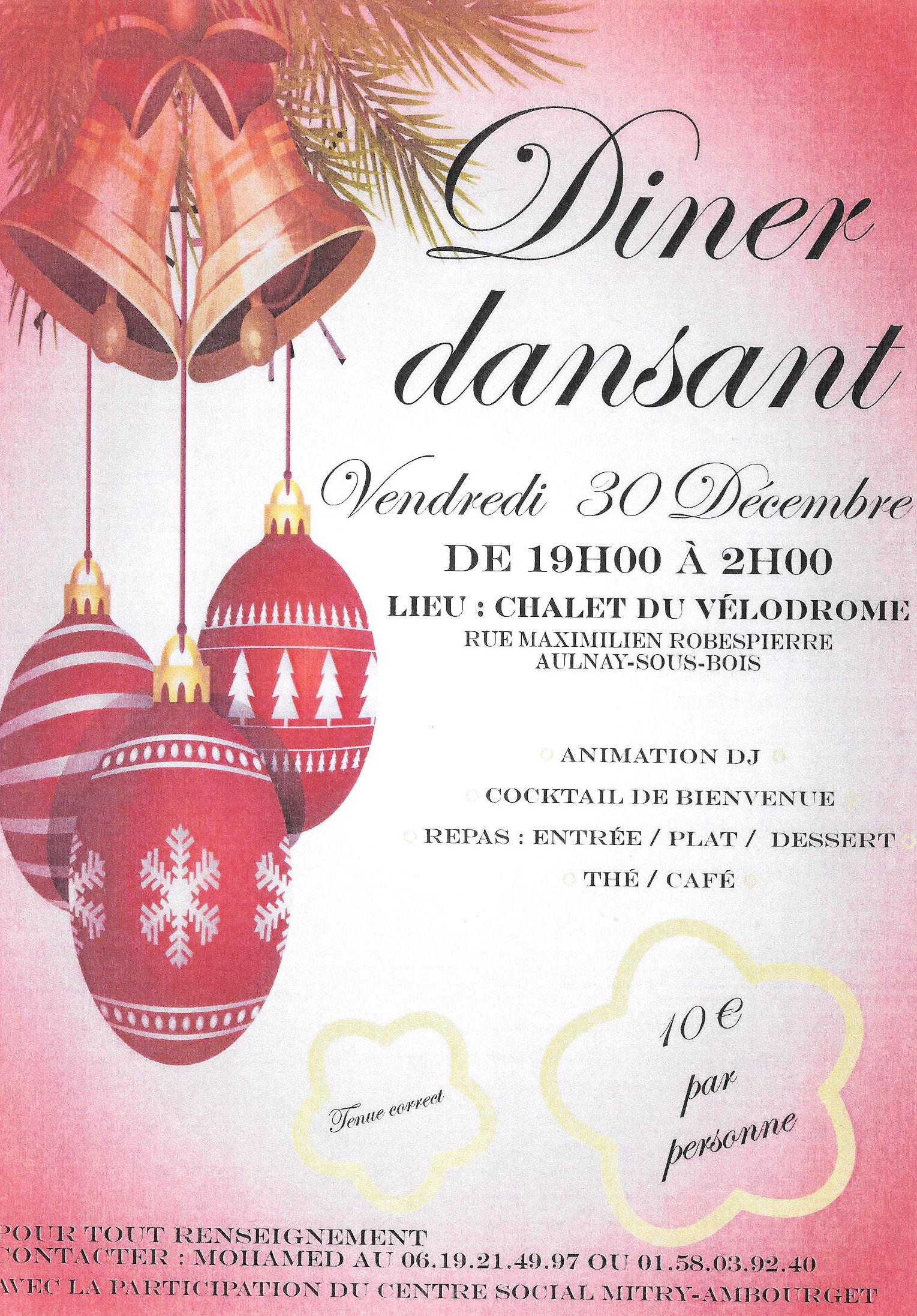 Dîner dansant pour les fêtes de fin d’année au chalet du vélodrome à Aulnay-sous-Bois