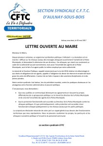 La CFTC communaux d’Aulnay-sous-Bois demande au Maire que des actions soient prises contre le groupe « La révolution est en marche » après que le directeur de la police municipale ait fait l’objets d’attaques. La CFTC demande notamment la protection fonctionnelle du directeur en vue d’une attaque pour diffamation.