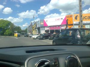 Rue de Bruxelles (récemment débaptisée), face à l’ancien »CAR GLASS », des véhicules sont déposés en vue d’être vendus sur le trottoir et devant un passage protégé piétons.