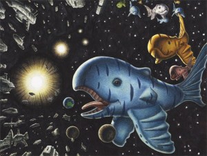 Il s’agit de la nouvelle boutique Patateman, où vous trouverez également d’autres créations (originaux d’illustrations). Par exemple, le Gobeur de mondes :