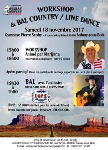 Bal country organisé par l’association « Aulnay country line dance » le samedi 18 novembre 2017