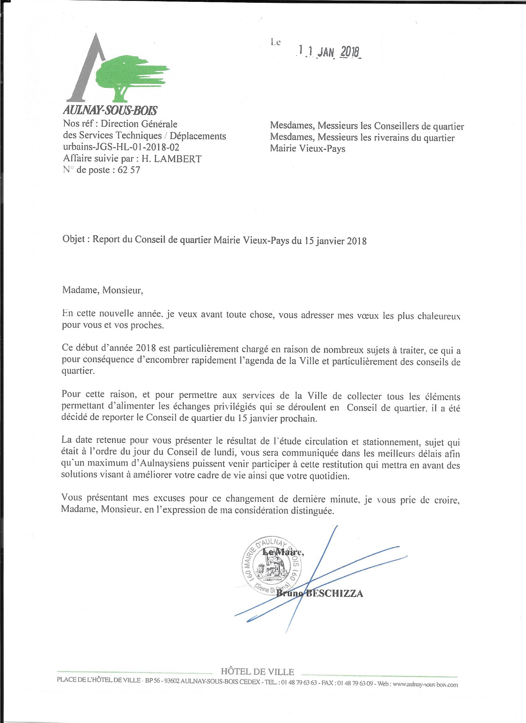 Information importante: Report du conseil de quartier Mairie-Vieux pays