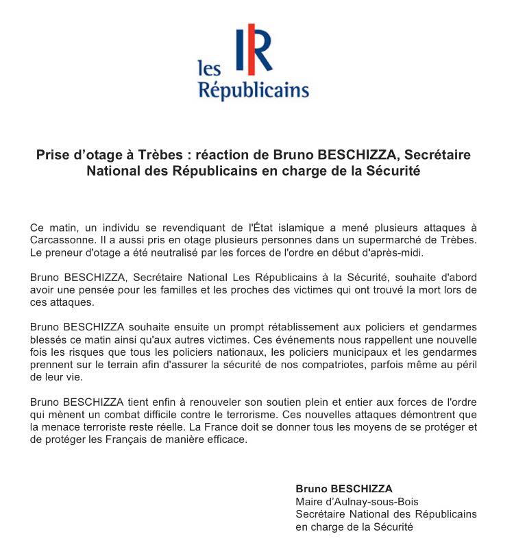 Communiqué de Bruno Beschizza suite à la prise d’otages à Trèbes