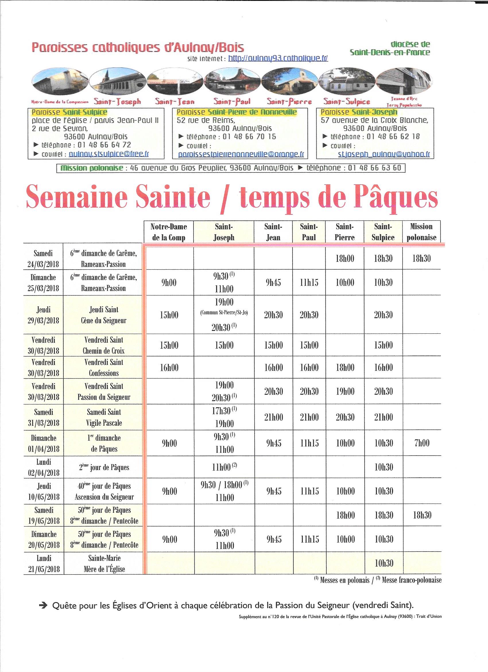Tous les horaires par paroisses aulnaysiennes en cliquant sur ce tableau ci dessous.