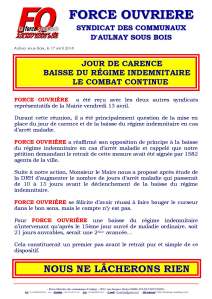 Publié le 18 avril 2018, dans Syndicats, et tagué Aulnay, Aulnay-sous-Bois, Force Ouvrière, Jour de carence. Bookmarquez ce permalien. Poster un commentaire.