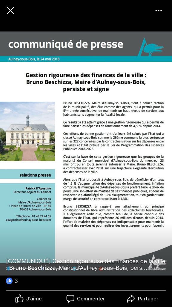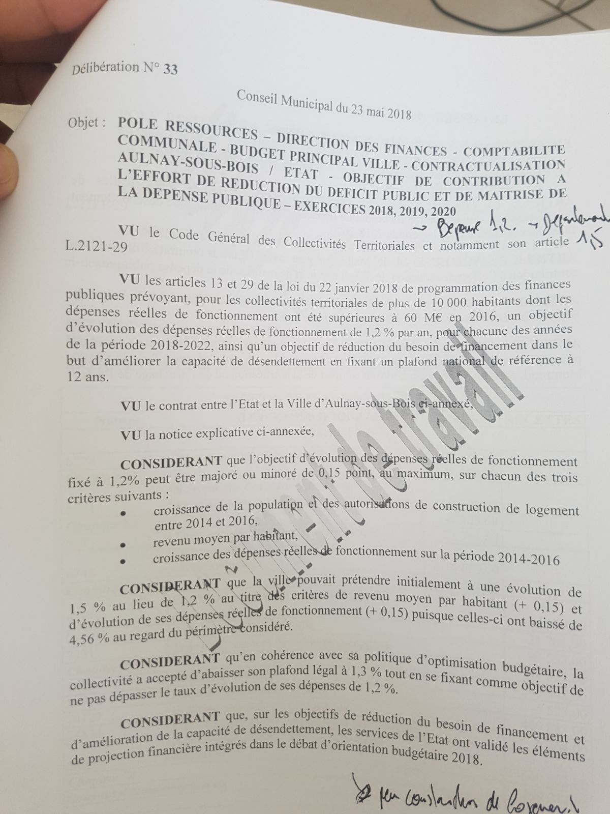 Vous trouverez ci-dessous le communiqué du maire d’Aulnay. En l’occurrence, au lieu de se féliciter, le maire devrait dire qu’il signe car il n’a pas le choix : il doit respecter la loi qui lui impose de limiter la hausse de ses dépenses de fonctionnement (1,2% en moyenne pour les collectivités locales).