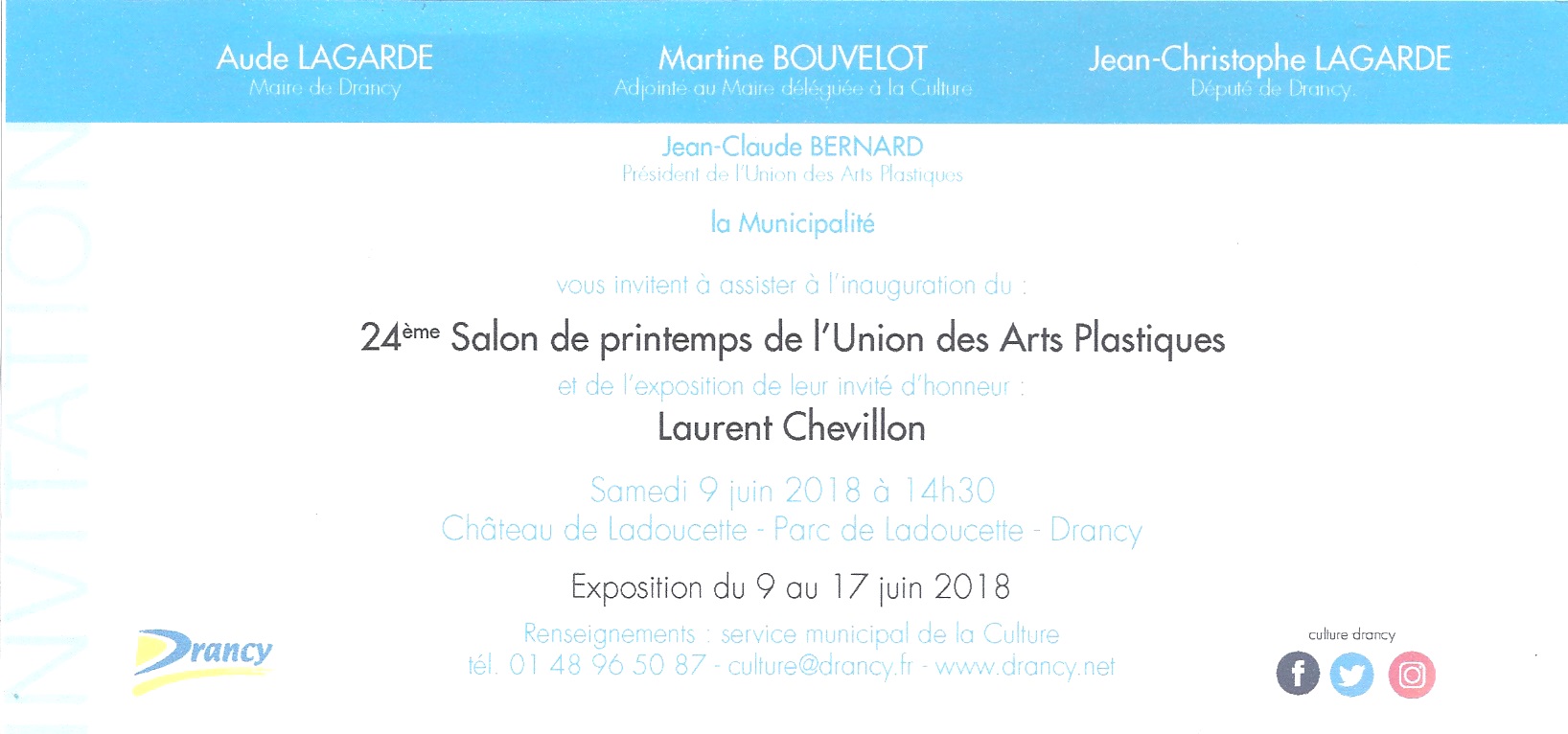 L’Union des Arts Plastiques de Drancy (UAP) vous invite au Vernissage de son 24ème salon de Printemps le samedi 9 juin 2018 à 14h30.
