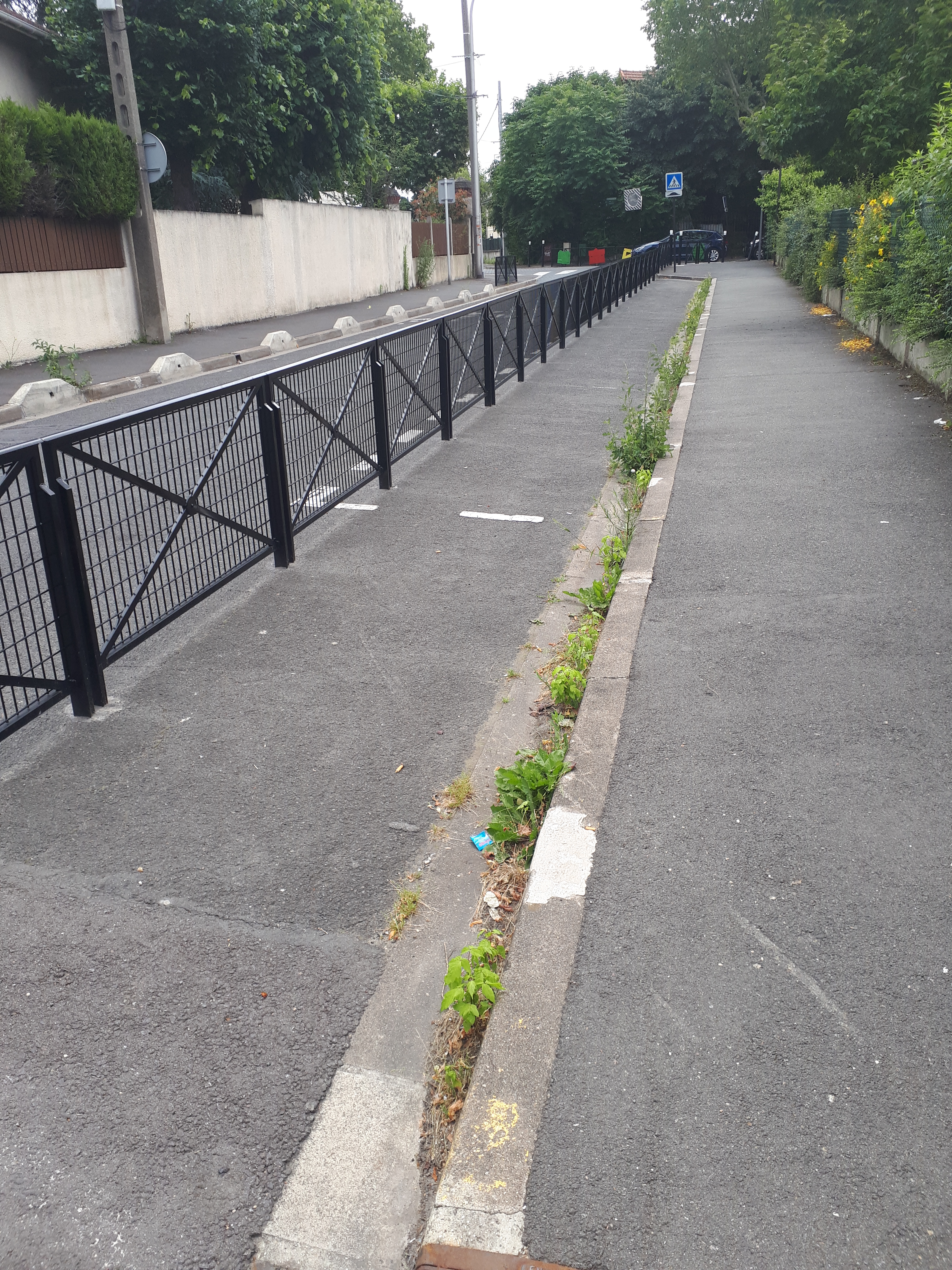 Comme vous pouvez le voir sur les images, les herbes folles envahissent les arbres de la rue Albert Ballet, ainsi que le caniveau devant l’école maternelle Nonneville.