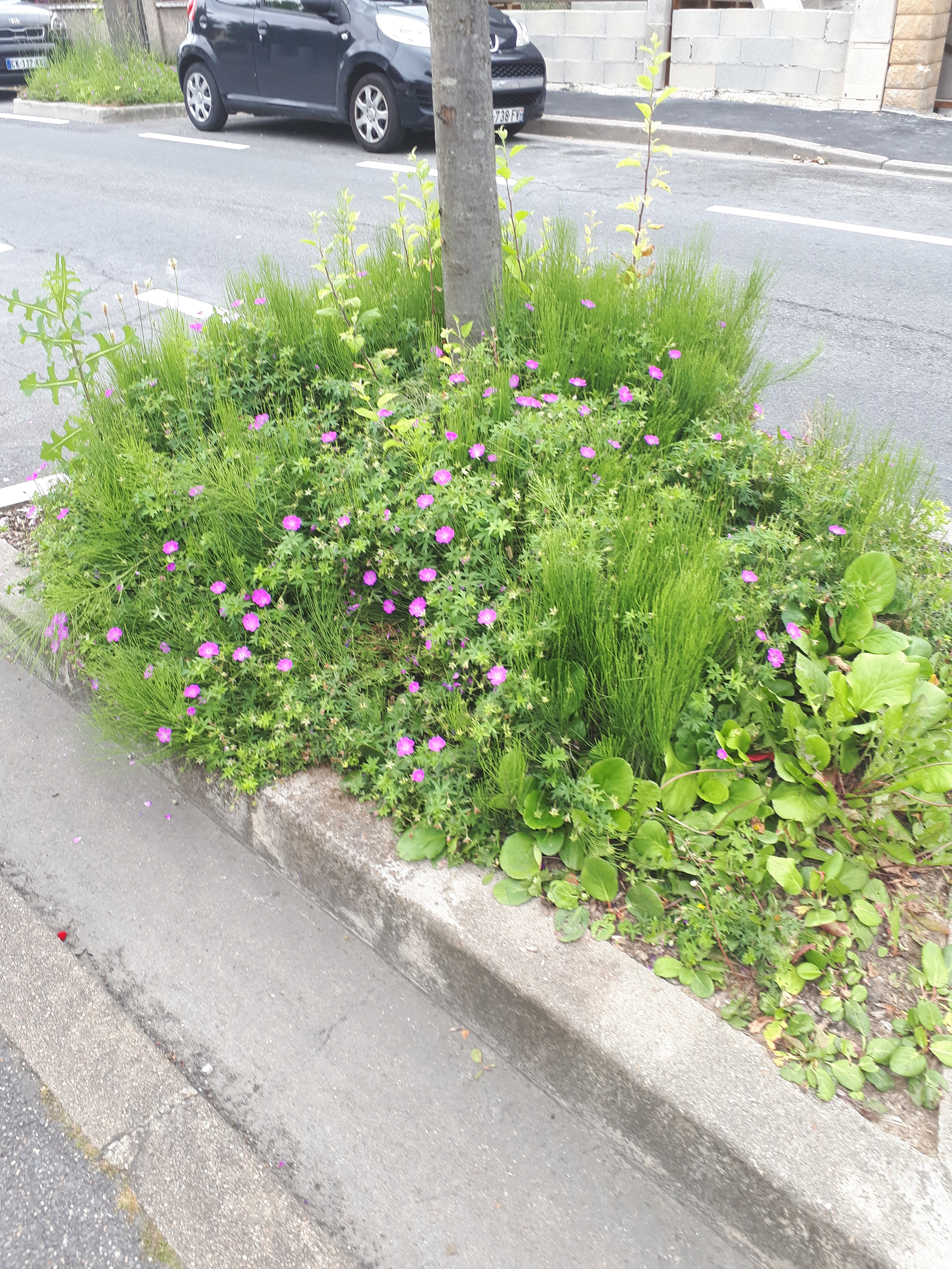 c’est aussi écologique de laisser les herbes pousser au pied des arbres (c’est la nature après tout) et bien des communes en province laisse l’herbe pousser en bord de routes pour favoriser la bio diversité. Je trouve l’herbe bien plus agréable à voir que les détritus qui jonchent les rues (papiers sales, mégots…) par contre le caniveau pourrait et devrait être nettoyé à coup de binettes (je retire déjà les herbes devant chez moi comme cela, la mairie ne le faisant jamais depuis 12 ans que je suis à la même adresse)