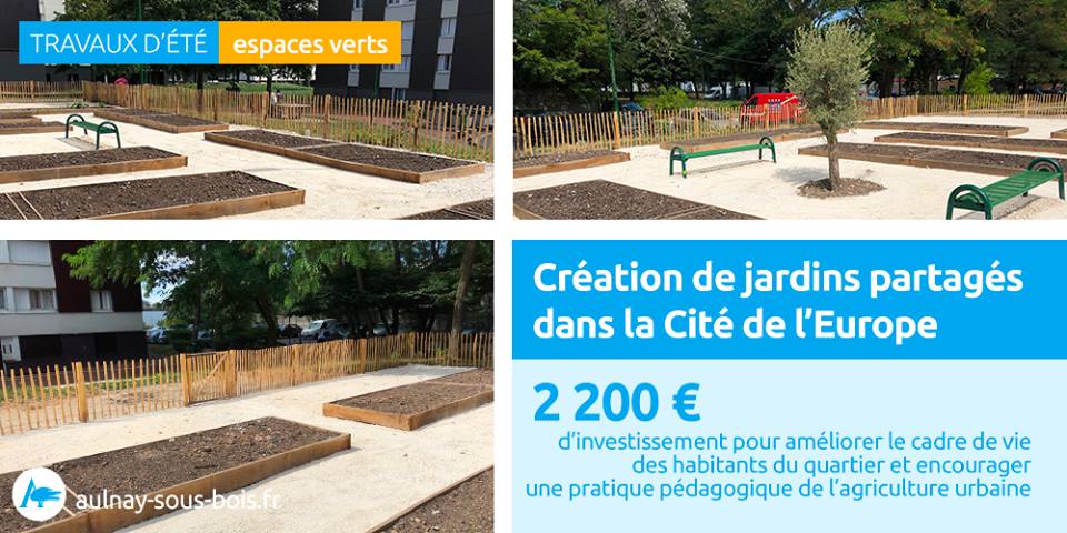 Des jardins partagés ont été aménagés durant l’été à la Cité de l’Europe. Gérés par l’ACSA, ils vont permettre de sensibiliser les habitants du quartier à la pratique de l’agriculture urbaine. L’Amicale des Locataires a fourni un arbre d’ornement qui a été planté au centre des jardins par les services des espaces verts. Il grandira au fil des années avec ce beau projet discuté en conseil de quartier.