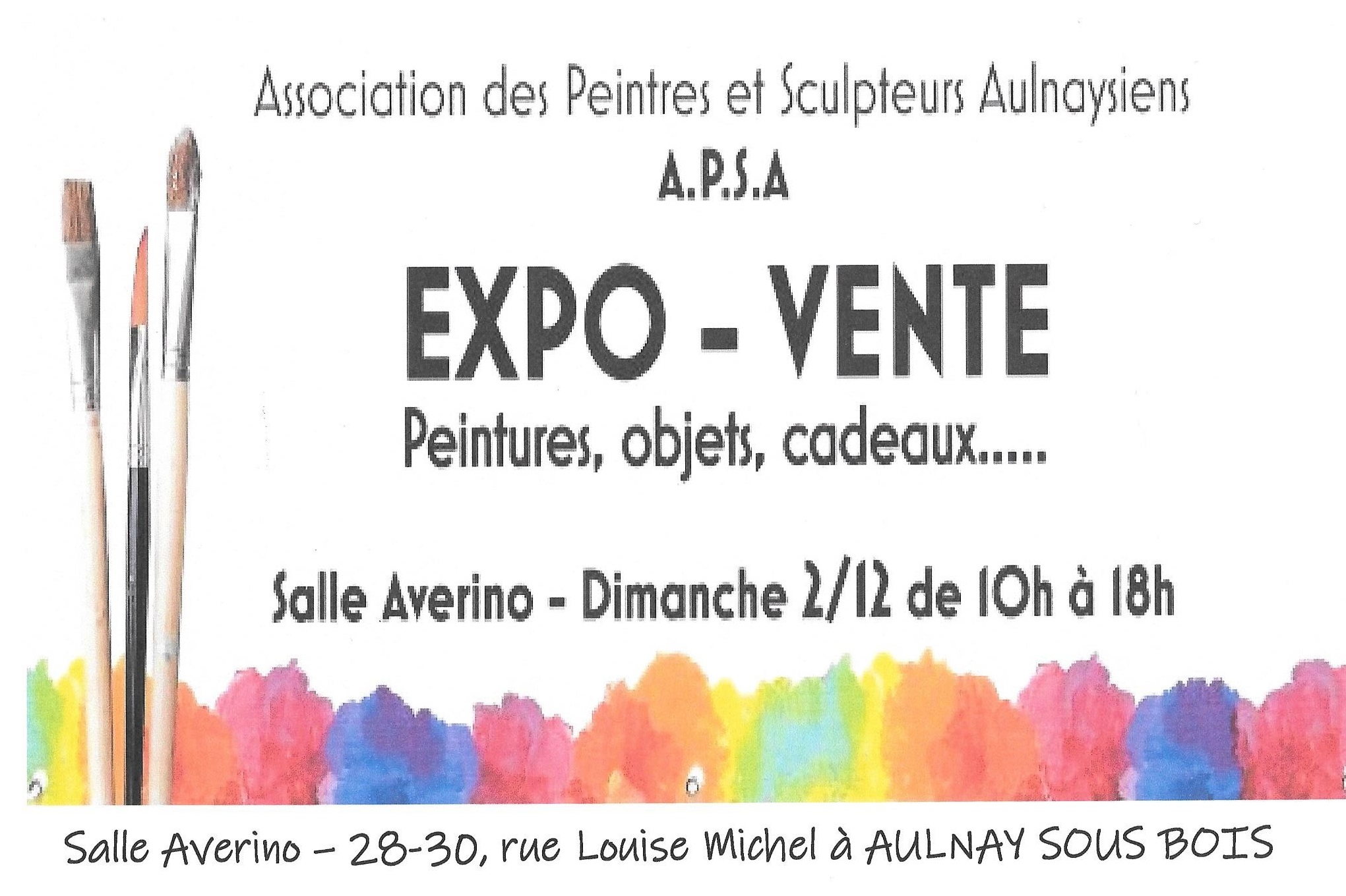 EXPOSITION – VENTE DE L’ASSOCIATION DES PEINTRES ET SCULPTEURS AULNAYSIENS CE DIMANCHE