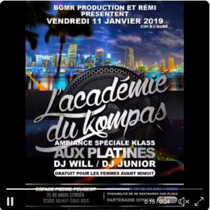 BGMR Production et Remi vous proposent « L’académie du Kompas » ambiance spéciale Klass le vendredi 11 janvier à 23h à l’espace Pierre Peugeot à Aulnay-sous-Bois (75 Boulevard André Citroën).