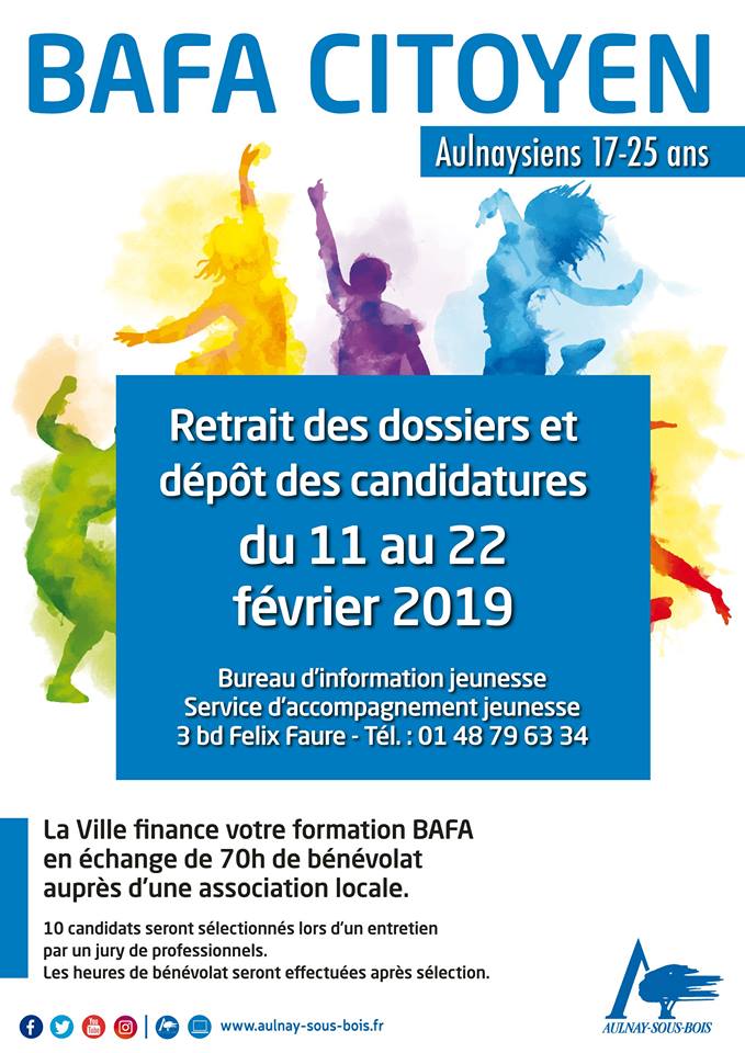 📆 Retrait des dossiers et dépôt des candidatures du 11 au 22 février 2019 au Bureau d’Information Jeunesse.