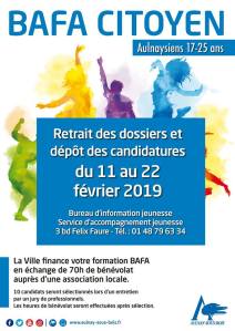 La ville d’Aulnay-Sos-Bois lance un « BAFA Citoyen » et permet aux jeunes aulnaysiens de 17 à 25 ans d’avoir la possibilité de bénéficier d’une formation en échange de 70 heures de bénévolat auprès d’une association locale.