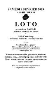 Soirée « LOTO » organisée par l’association » Aulnay country line dance » ce samedi