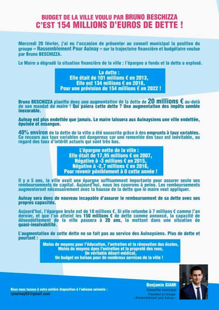 Publié le 18 mars 2019, dans Budget, Politique, et tagué Aulnay, Aulnay-sous-Bois, dette. Bookmarquez ce permalien. 2 Commentaires.