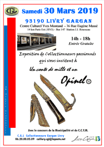 Exposition » Milles et un opinel » à Livry Gargan Ce samedi 30 mars 2019