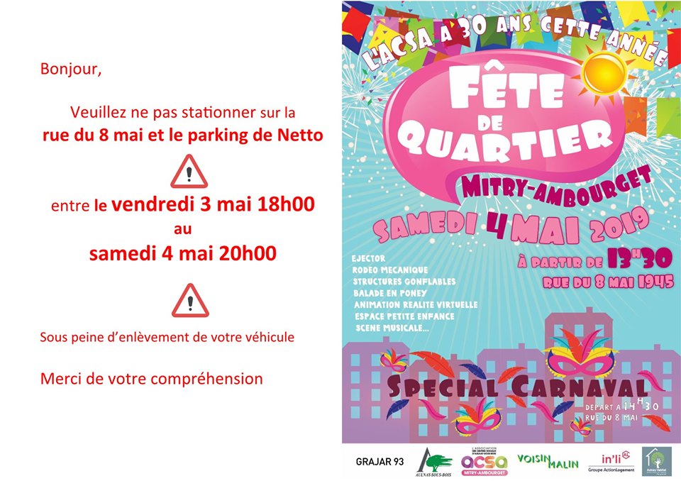 La fête de quartier Mitry Ambourget est annulée à cause de la météo