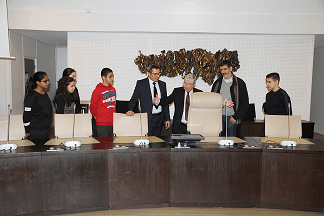 Figure : Messieurs Mohamed AYYADI et Gérard PRUDHOMME avec des élèves de la 3C au conseil départementale 93.