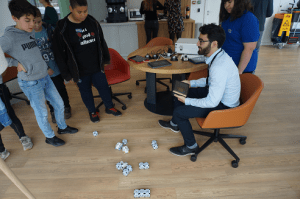 Dans un second temps, un atelier de démonstrations et de manipulation par les élèves a été programmé au sein du laboratoire d’innovation, avec : des robots, de la réalité virtuelle, des drones et d’autres innovations.