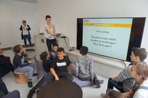 Les élèves ont bénéficié d’une journée d’initiation à la culture numérique, à l’usage des outils informatiques et au codage technologique le 6 décembre dernier au sein du collège Gérard Philippe en collaboration avec Simplon.co, Accenture, Girls in Tech et avec le soutien de Monsieur Mohamed AYYADI, Ingénieur Système et élu départemental. Aujourd’hui les collégiens de 5ème ont participé, aux côtés des élèves de CM2 de l’école Bourg1, à une nouvelle action « Cap sur le Code », en partenariat avec Innov Avenir et dans le cadre de notre liaison Ecole-Collège au sein des locaux de l’Institut CapGemini à Issy-les-Moulineaux. Cela sous la direction de Madame MILVILLE, Principale du collège et son Adjoint, Monsieur BENHADRIA, accompagnés des parents d’élèves.
