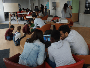 Dans un premier temps, un atelier d’apprentissage au code a été animé par des ingénieurs en numérique (les élèves sont répartis en binôme mixte Fille-Garçon).