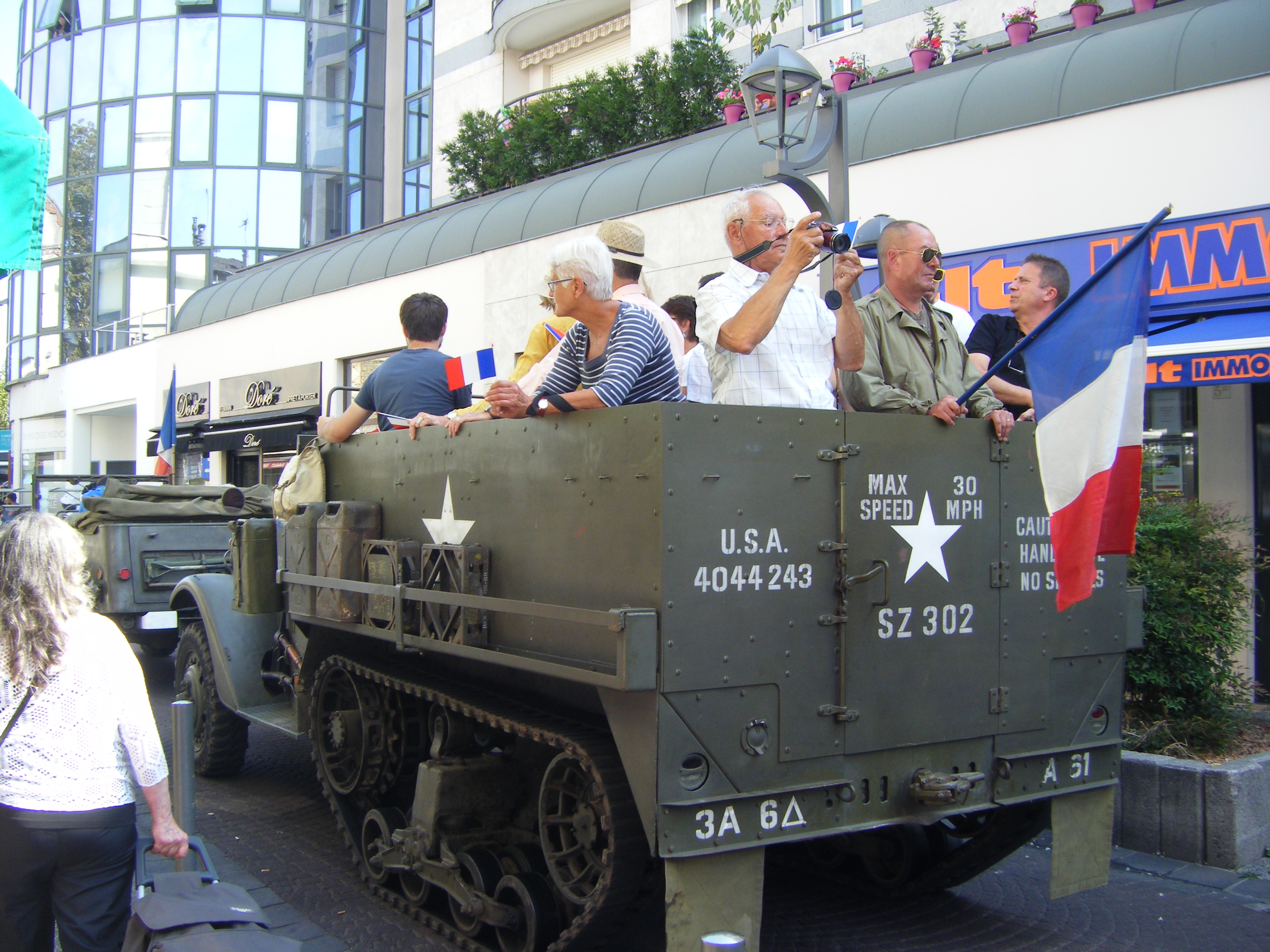 Défilé de véhicules militaires sur le boulevard de Strasbourg à Aulnay-Sous-Bois