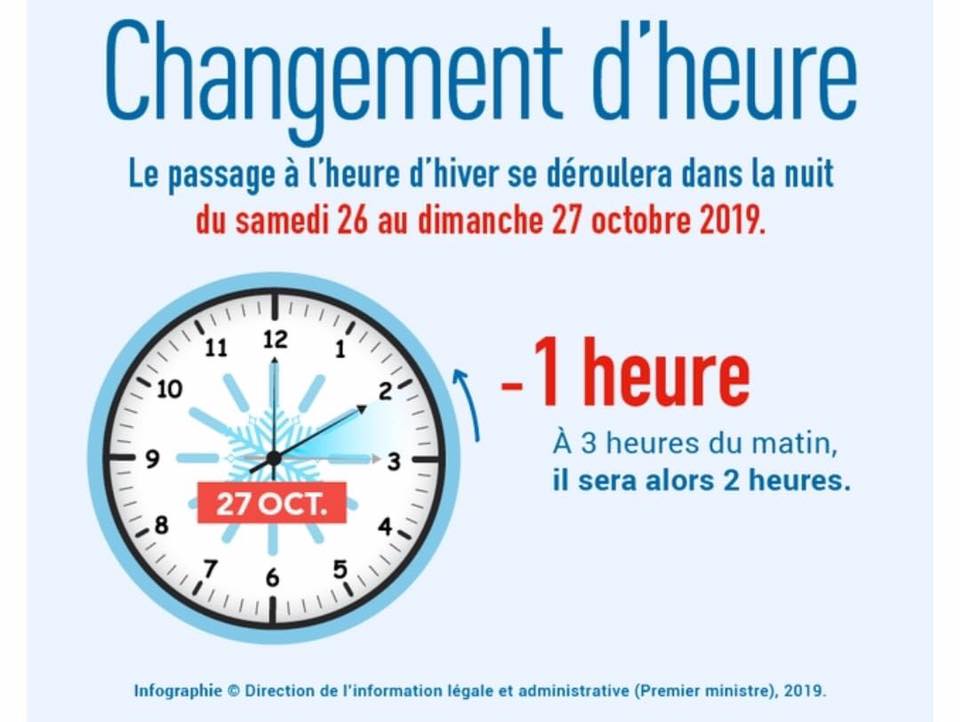 A vos agendas : Changement d’heure dans la nuit de samedi à dimanche prochain!