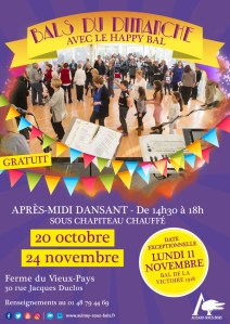 Bal du dimanche exceptionnel le LUNDI 11 NOVEMBRE et le 24 novembre 2019 de 14h30 à 18h.
