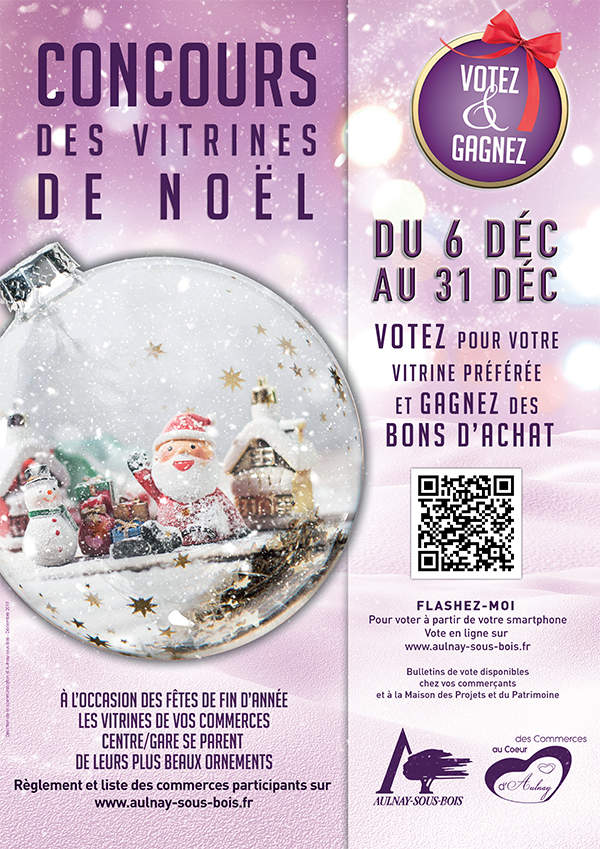L’association de commerçants « Au cœur des commerces d’Aulnay » organise la deuxième édition du concours des Vitrines de Noël du 6 au 31 décembre. À l’occasion des fêtes de fin d’année les vitrines de vos commerces du centre gare se parent de leurs plus beaux ornements. Votez pour votre vitrine préférée et participez au tirage au sort pour tenter de gagner des bons d’achat.