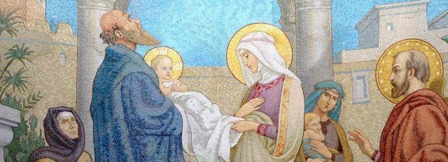 Joseph et Marie se rendent au temple de Jérusalem pour présenter l’enfant nouveau-né au Seigneur, comme le veut la tradition, comme le veut la loi de Moïse.